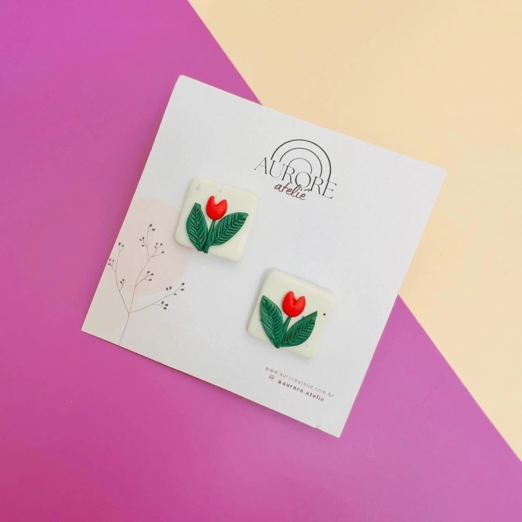 Características do produto: Brinco confeccionado em cerâmica plástica. Fechamento por pino e tarraxas em aço inox.